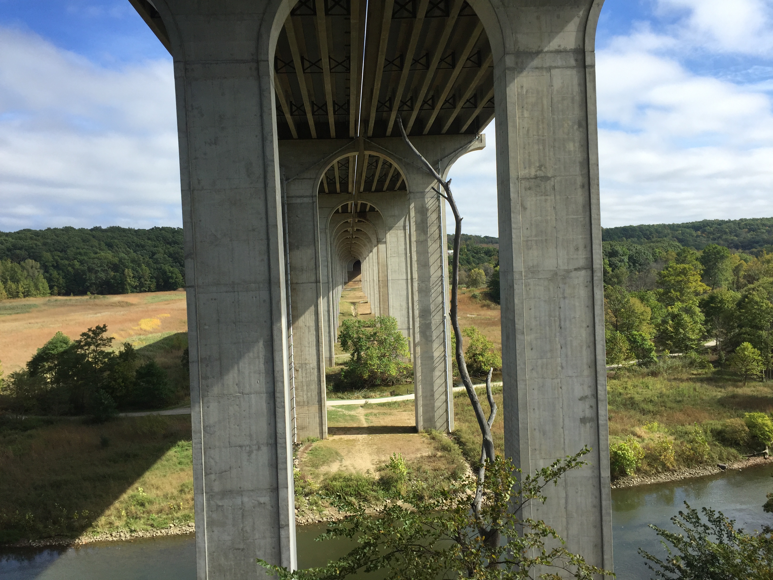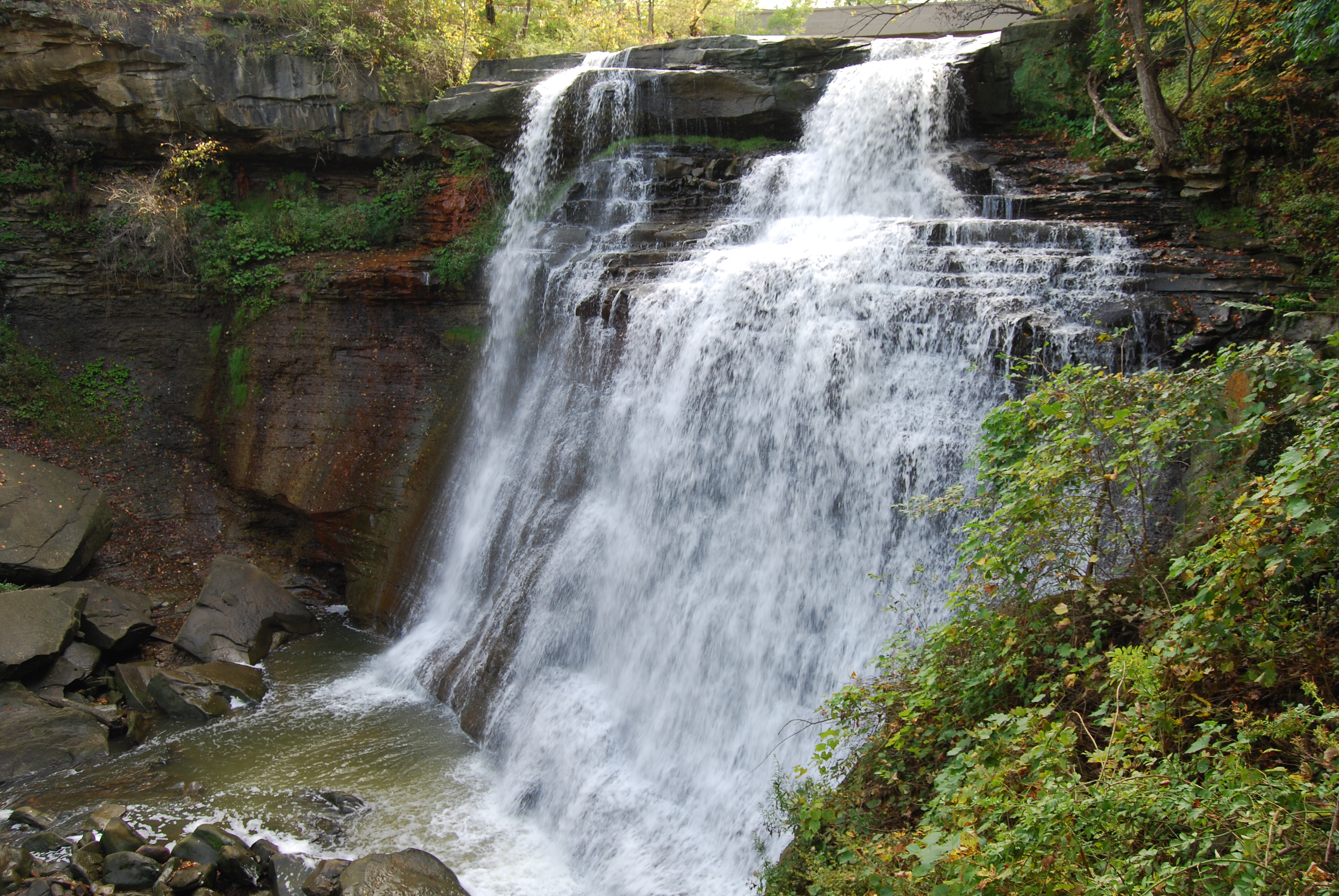 Today was a beautiful day with partly cloudy skies and temperatures approaching 70 degrees. We headed into Cuyahoga Valley National Park in the morning to give us plenty of time to explore. The park was only 15 minutes from our campground and the ride in was through very beautiful towns. The houses were huge with well maintained yards. We arrived at the visitors center in Peninsula just as one of the old steam engines was pulling in. We stocked up on maps and headed out to explore. The first stop was at Brandywine falls where we took a loop trail but couldn’t complete it because the bridge was out. The hike turned into a 2 mile out and back. The falls were huge and they were flowing pretty nicely due to all of the rain.The Towpath trail runs right through the park. We had made the tough decision to not take our bikes with us on this trip and we really wish we had. The bikes aboard program is a really good deal for just $3. It is definitely the cheapest way to ride the train. We will plan on bringing our bikes next year and taking advantage of this deal and the great trails.